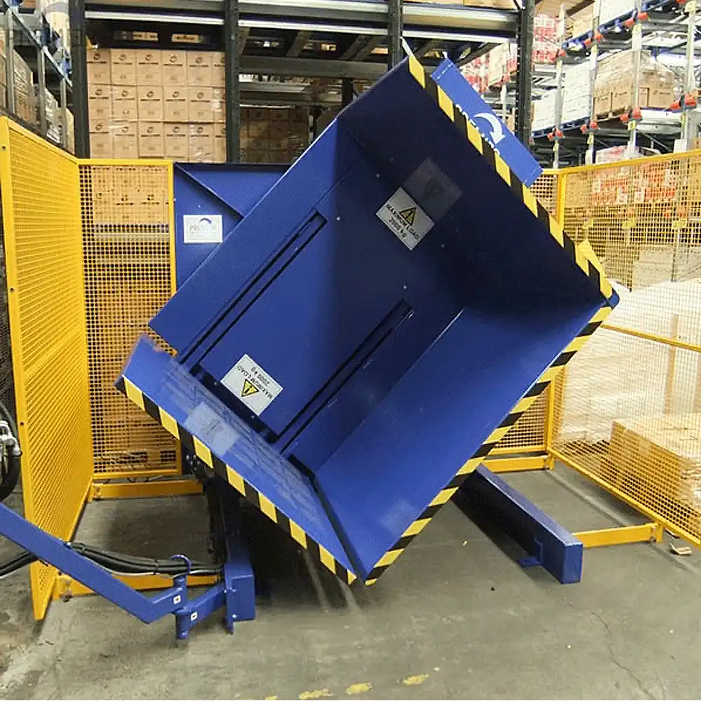El sistema hidráulico de la máquina volteadora de tarimas es de alto rendimiento, por lo que ofrece un funcionamiento estable, preciso y silencioso, reduciendo tiempos de maniobra y riesgos laborales.