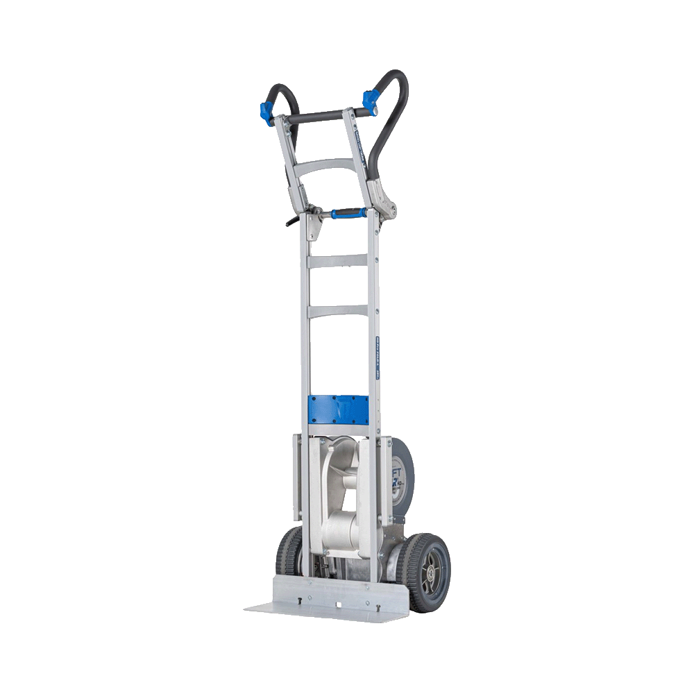 Diablito de carga eléctrico 620Lb de 600 pasos diseño plegable es una solución de transporte diseñada para mover cargas pesadas por escaleras de manera segura, eficiente y sin esfuerzo físico excesivo. Con una estructura extremadamente robusta y ligera, este equipo incorpora ruedas a prueba de pinchaduras y un sistema automático de frenado en cada escalón, garantizando máxima estabilidad en superficies rectas o curvas. Su diseño plegable permite almacenarlo y transportarlo fácilmente, adaptándose a entornos industriales, logísticos y de servicios.