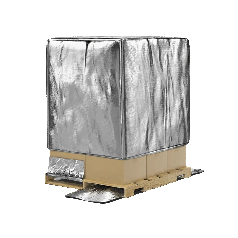Esta funda térmica reflectante para pallets cuenta con cierre en las cuatro esquinas, utilizada por muchos de los principales fabricantes mundiales de alimentos, productos farmacéuticos y químicos para proteger mercancías sensibles a la temperatura a lo largo de la cadena de suministro.