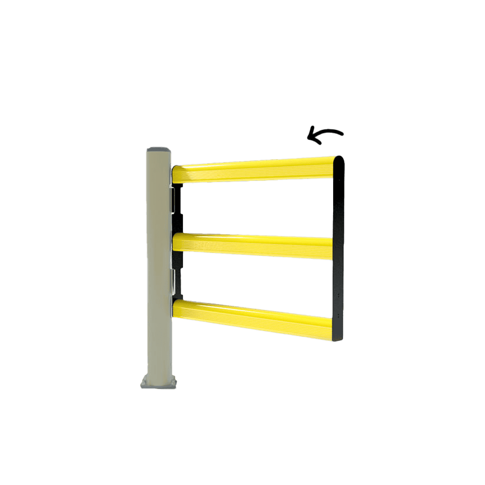 • Diseño abatible: La puerta se abre en un solo sentido, lo que permite un flujo controlado de personas y evita el retroceso no deseado.